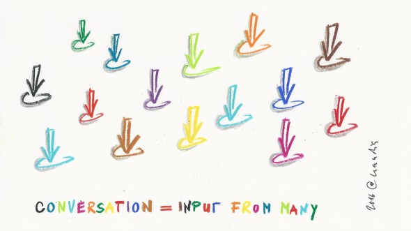 Eight, and last but not least, conversation is input. Conversation allows for ‘inputs’ from many. By building on the bits and pieces that we bring together through conversation we manage to complete the puzzle.