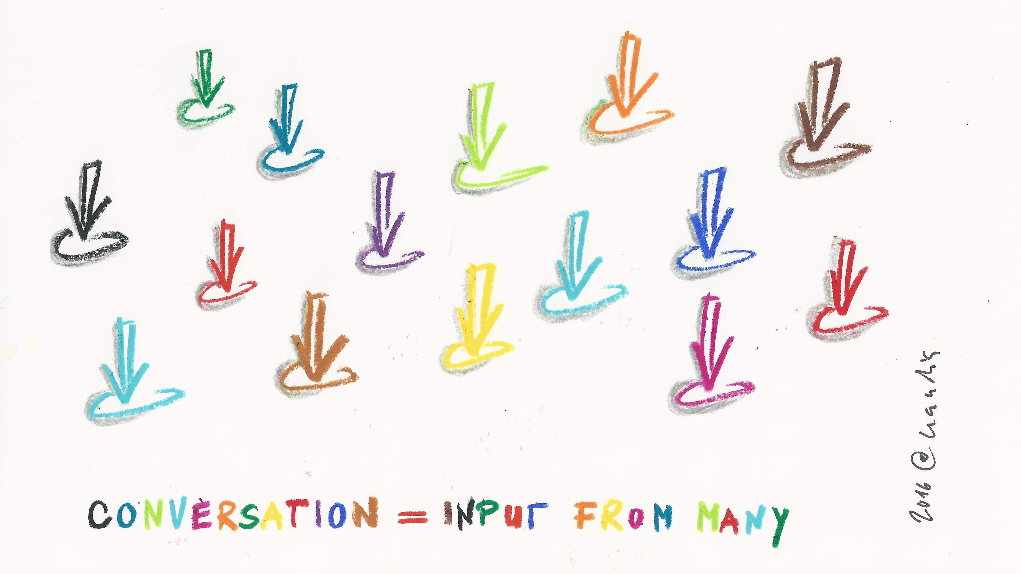 Eight, and last but not least, conversation is input. Conversation allows for ‘inputs’ from many. By building on the bits and pieces that we bring together through conversation we manage to complete the puzzle.