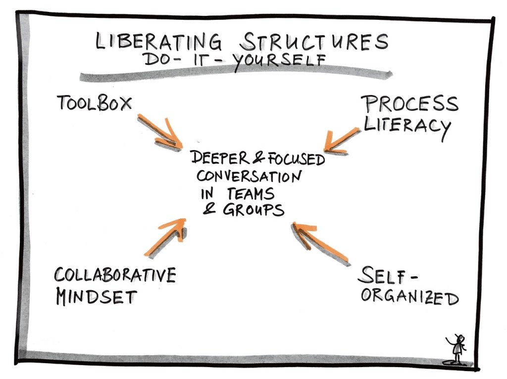 It is the same with Liberating Structures: Liberating Structures is a do-it-yourself concept for teams, groups, networks to work better together.