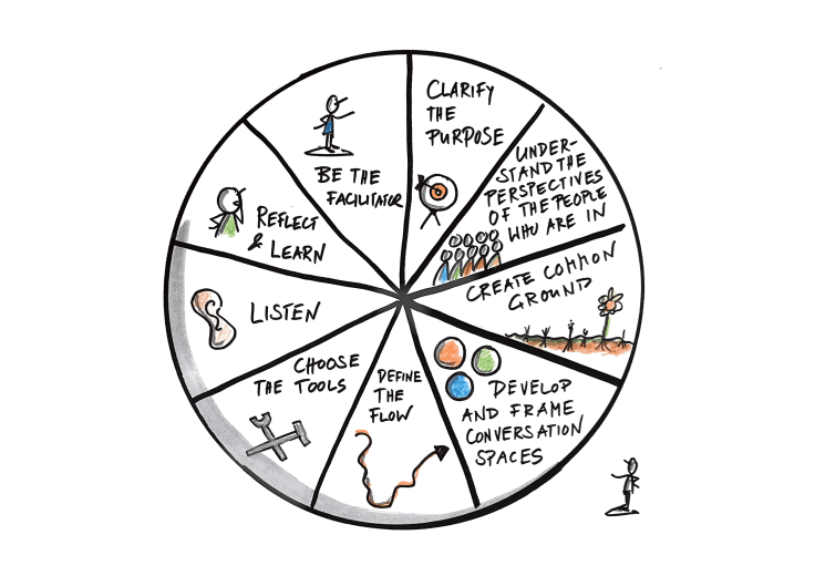 Facilitation is about collaboration. The facilitator supports the collaboration of a team, a group, a network, a community, an organization. The perspective of the people who are in a workshop, meeting or learning event is guiding the workshop. They are the actor and owner of their own learning, and they are contributing to the joint learning process of the group.