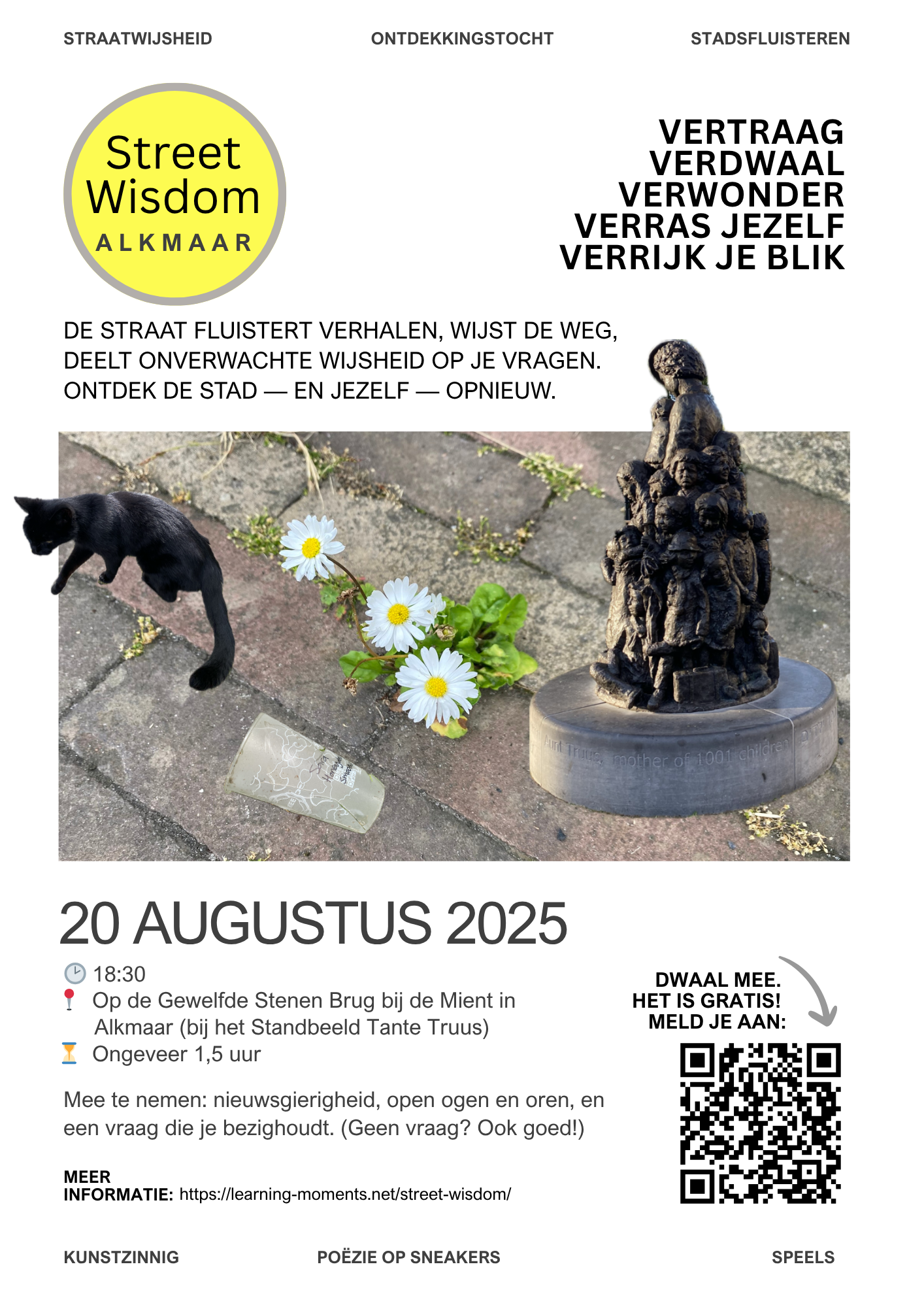 Street Wisdom draait door – ook in de winter. We starten bij de Bib in Alkmaar en kijken wat het weer ons brengt. Bij winterzon trekken we de straat op. Bij storm zoeken we onze inspiratie binnen – met een warme kop thee of koffie.